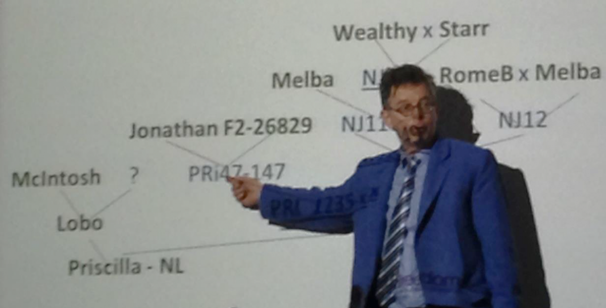 Upon commercial release, parentage information carries a lot of weight. Prospective growers of a new cultivar often use parentage as a proxy for genetic potential in the absence of more rigorous information or simply as an easy-to-understand shortcut. Both the good and the bad are imagined: “Honeycrisp is the father? Then I expect it to be much crisper than everyday crisp. But I’m concerned that it also inherited being prone to bitter pit. Oh, but the brochure provides evidence that it is free of bitter pit. Good to know.” The absence of such parentage information undermines a grower’s ability to make an informed decision. And knowledge of cultivar parentage and pedigree connections captures the fascination of the public – probably because rosaceous crop cultivars and their pedigrees are quite analogous to humans and our pedigrees.
